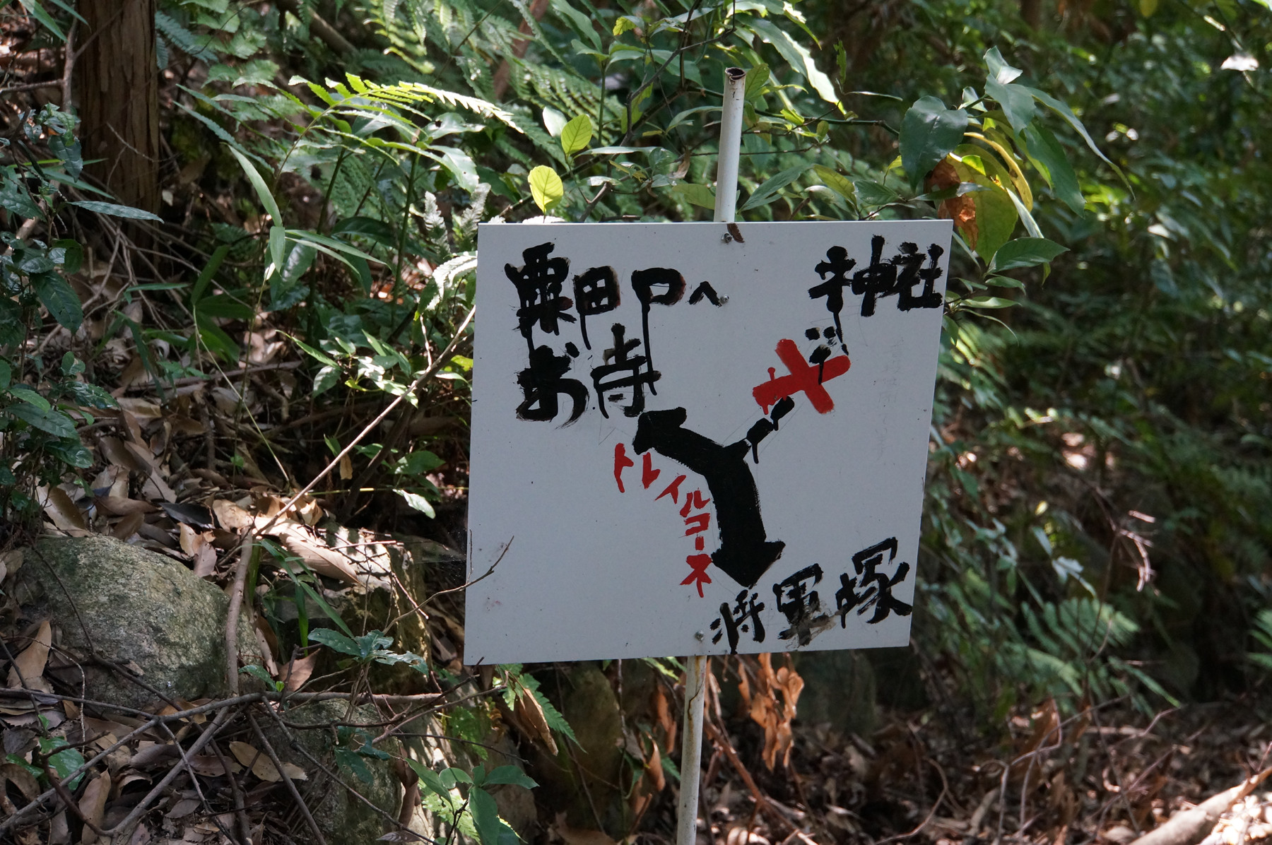 そしてまた険しい山道を歩いて行くと、なにやらゆるい感じの標識に癒やされる。