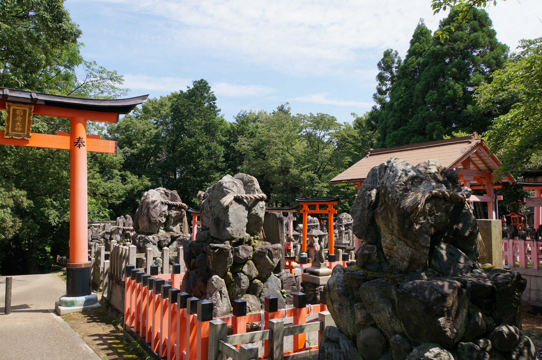 ひと気のない道を進んでいくと急に岩だらけの神社が!