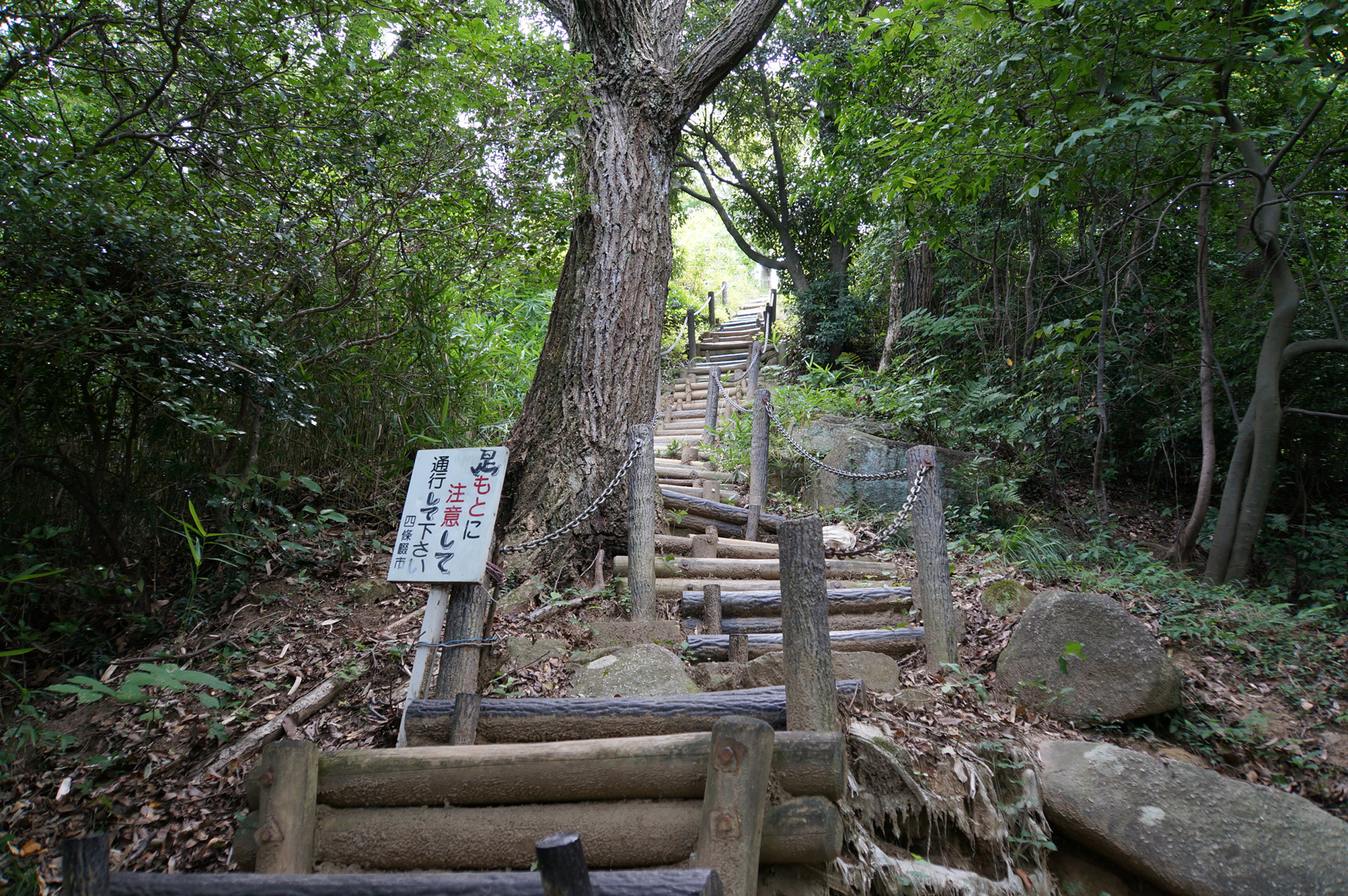 楠公寺から元のルートに戻ってどんどん下山していくと、やたらめったら階段だらけになった。